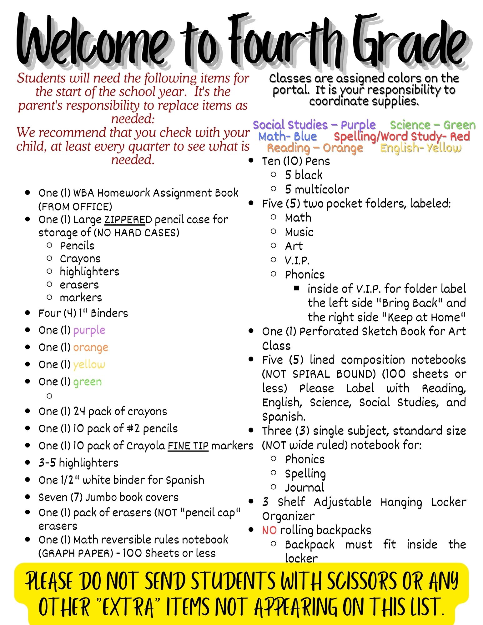 Downloadable Content Fourth Grade Supply List Contact our school today to arrange a private tour at your convenience. Call or Fill out the form below Call (570) 823-7574 Parent/Guardian Name(Required) First Last Student Name(Required) First Last Student Age(Required)Grade(Required)KindergartenFirst GradeSecond GradeThird GradeFourth GradeFifth GradeSixth GradeSeventh GradeEighth GradeContact Email(Required) Contact Phone(Required)